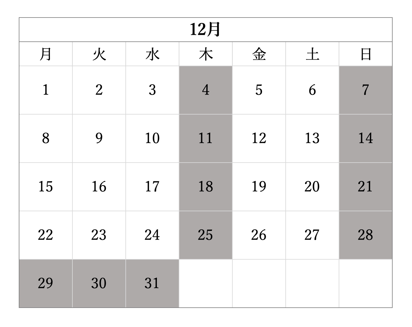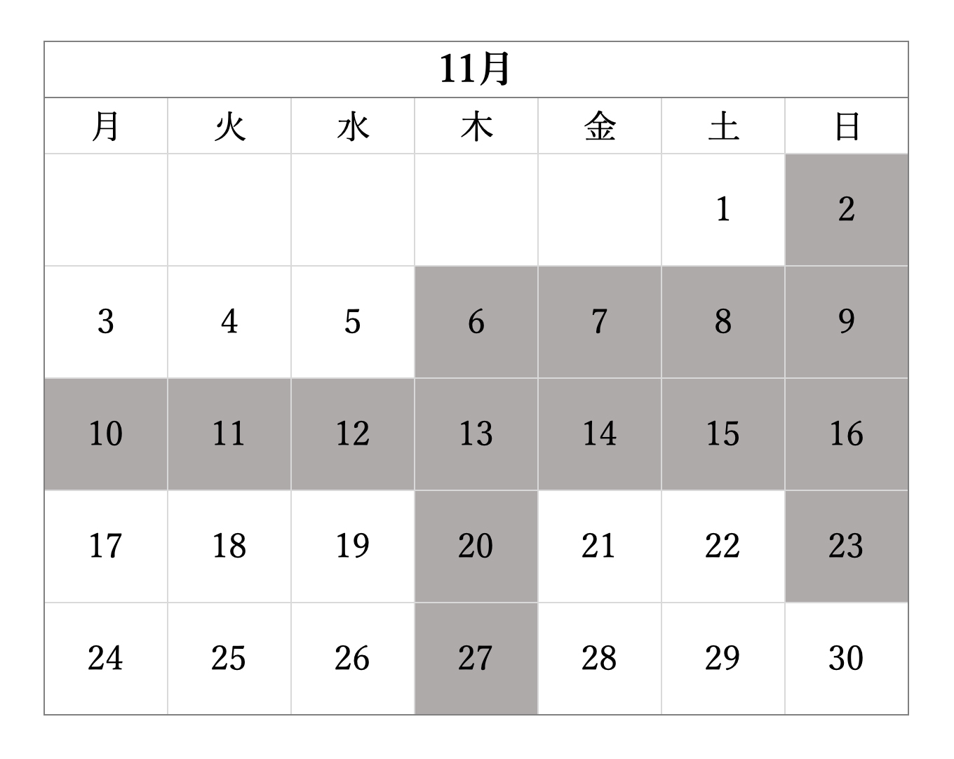 Please check the calendar below for opening and closing dates in November and December 2025.